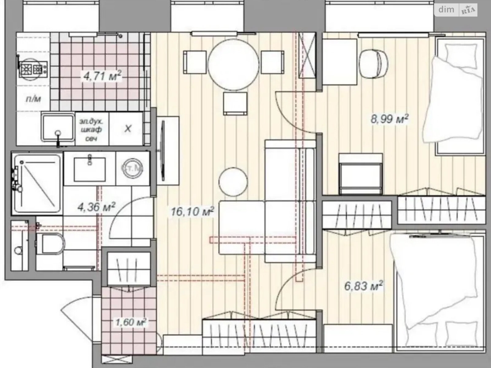 44 м2