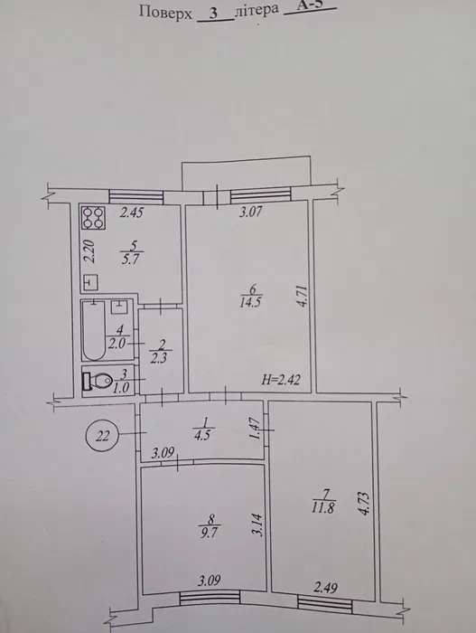 54 м2